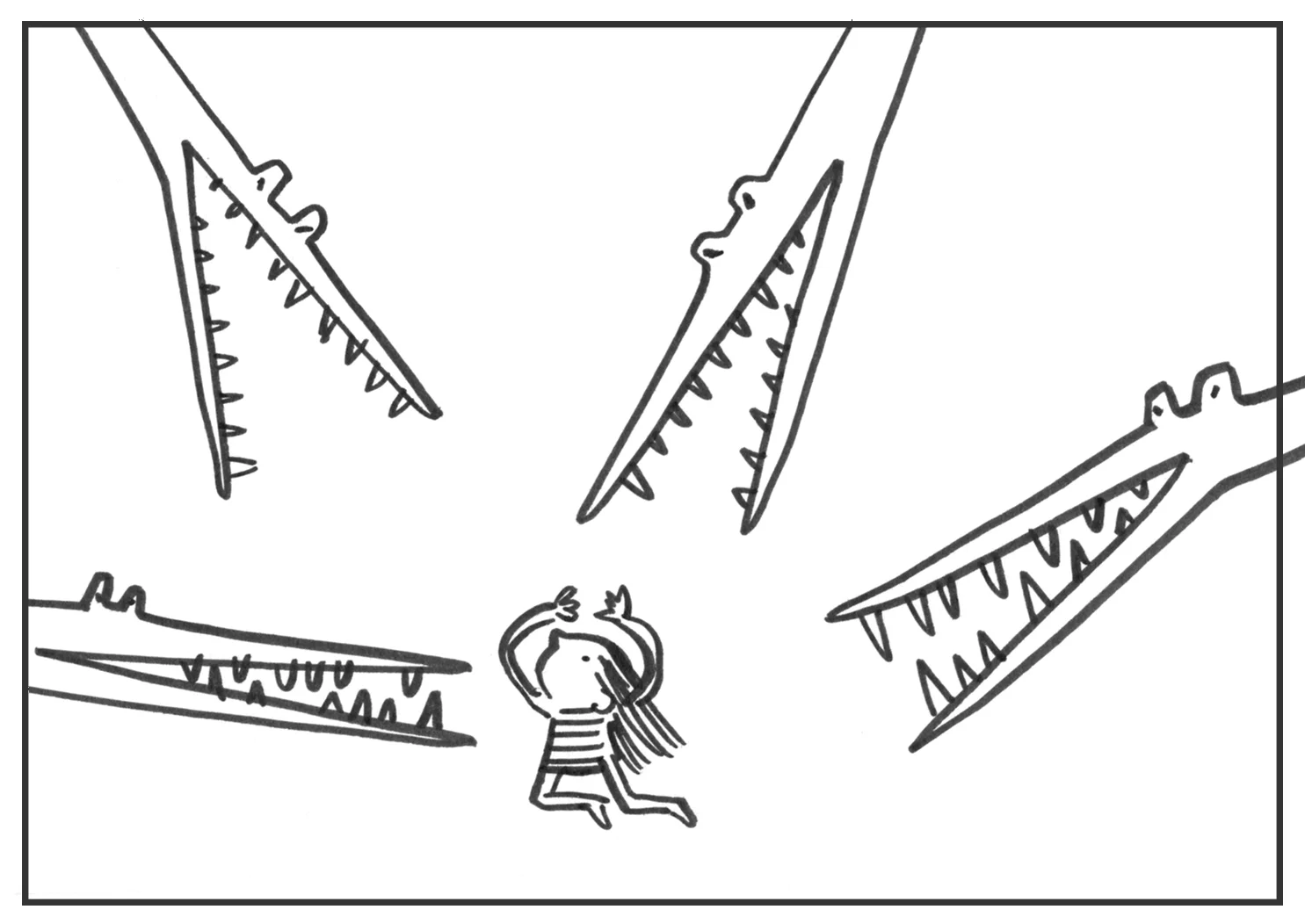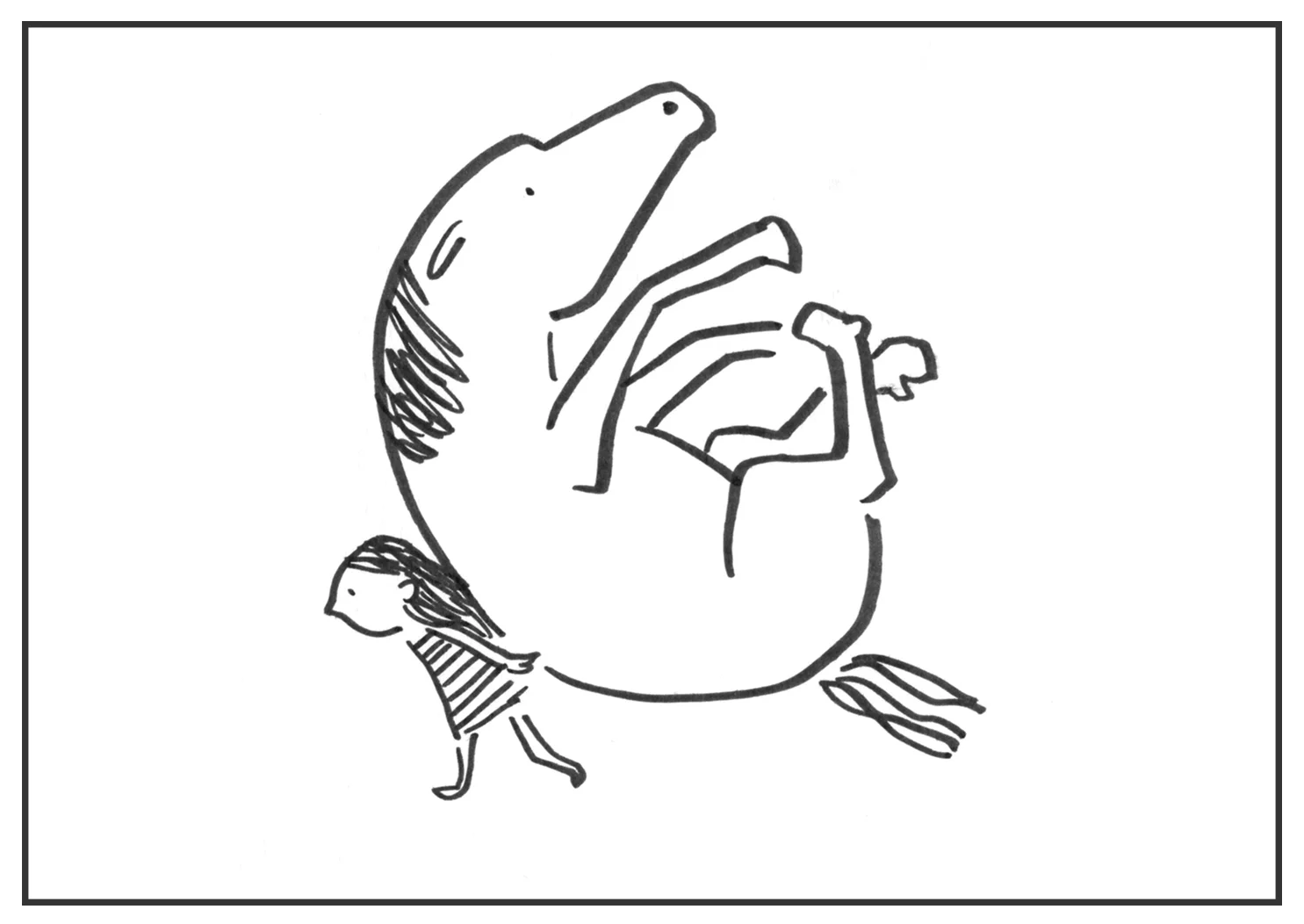 A selection of drawings & doodles made with brush pens in my sketchbook, some colored digitally in grayscale. Little people, animals, and buildings are my favorite things to draw and they show up in my sketchbooks over and over again.